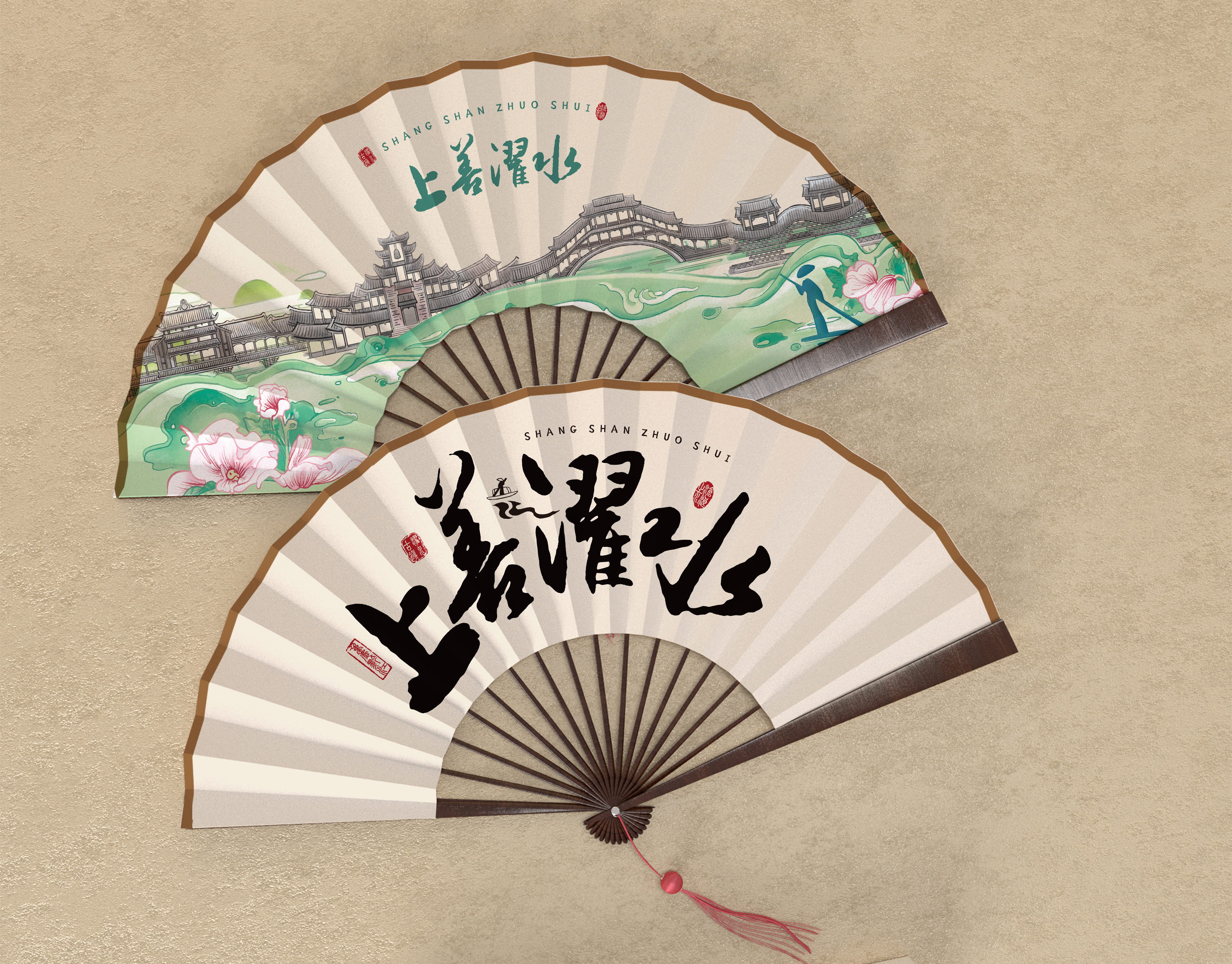 品名:濯水文創▪上善濯水折扇售價:25元產品說明:手繪創作濯河懷遠、唐鐘長韻、彩虹伏波、蒲花飛龍..